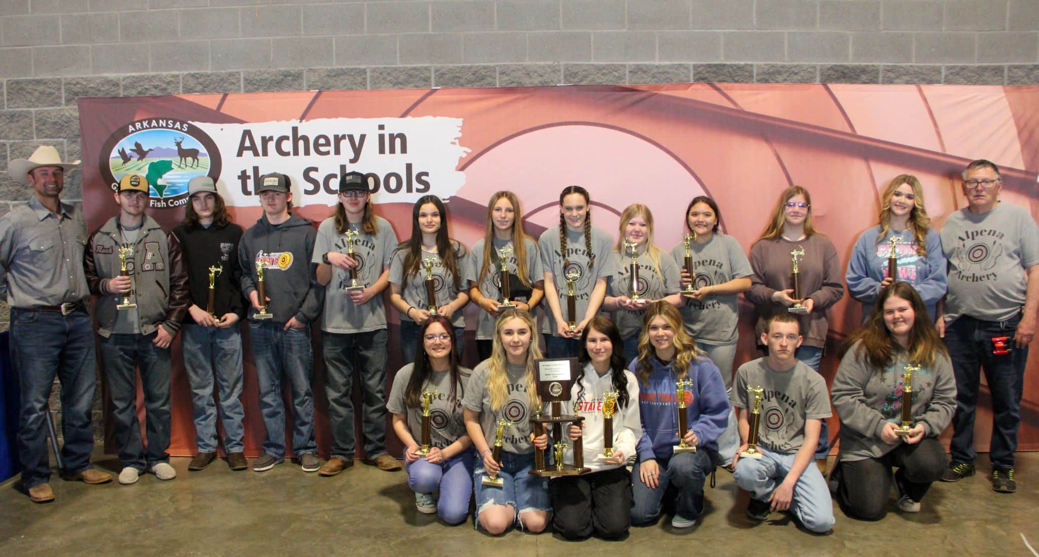 HOT SPRINGS — Alpena High School claimed first place at the Archery in the Schools state championship in the Hot Springs Convention Center and Bank OZK Arena Saturday with their top 12 archers posting a decisive score of 3,358 out of a possible 3,600 points. The feat completed their steady climb to the top of Arkansas’s high school archery ranks, besting their second-place score of 3,276 last year and their third-place finish (3,250 points) in 2022.