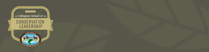 Through our School of Conservation Leadership Program, AGFC is working to increase conservation education, outdoor learning and outdoor recreation opportunities for students in Arkansas and to increase awareness of conservation careers and inspire the next generation of conservation professionals. The Commission has created a Collegiate designation for Post Secondary public and private colleges, universities, and two-year community/technical colleges that are doing this well. If you’d like your school to be a Collegiate School of Conservation Leadership, please work with your school’s administration to review the requirements below and complete the Letter of Commitment and return to the program coordinators if your school wants to participate. The Collegiate Program Coordinator is Becky Bloomfield becky.bloomfield@agfc.ar.gov.