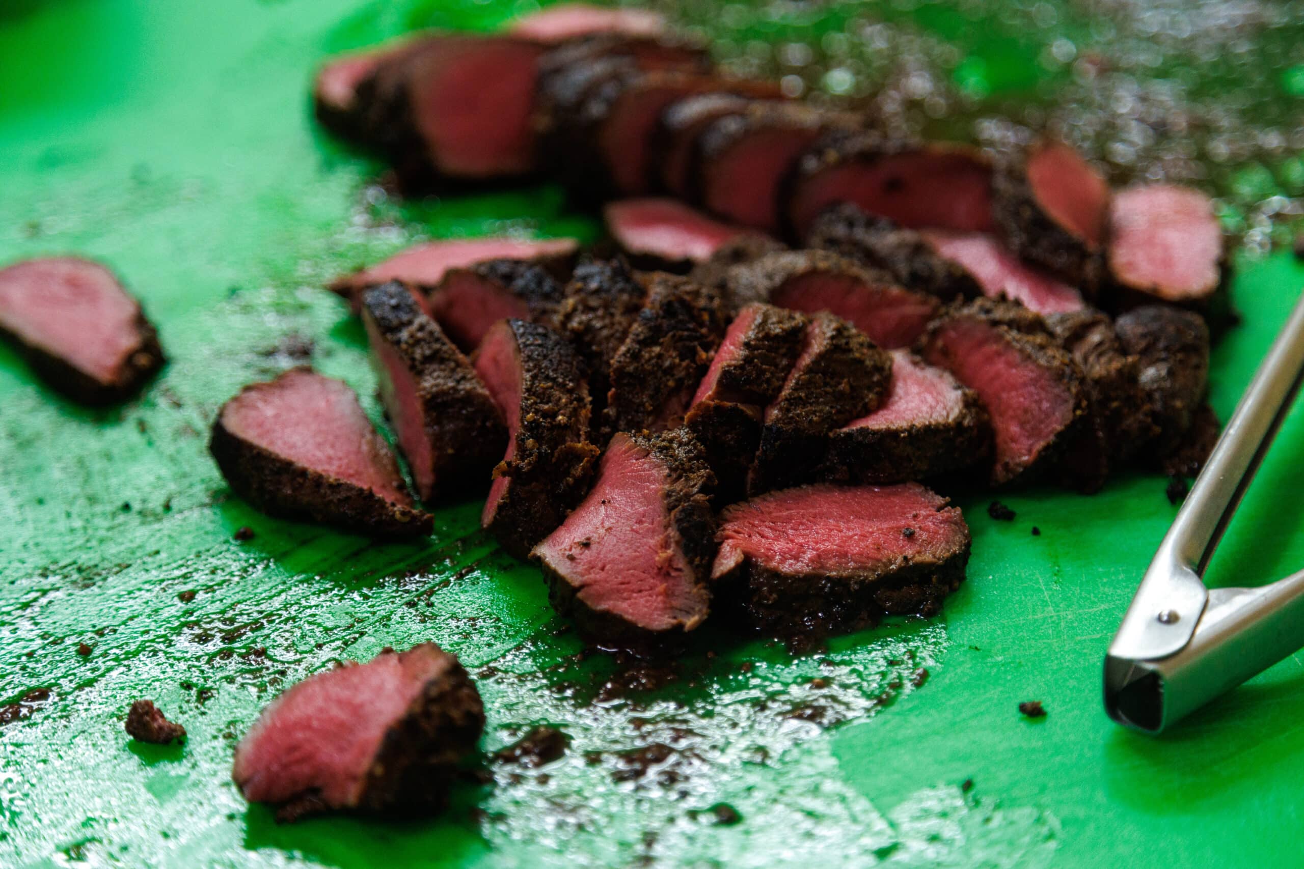 5 duck breasts: seared, roasted, and chopped beforehand.