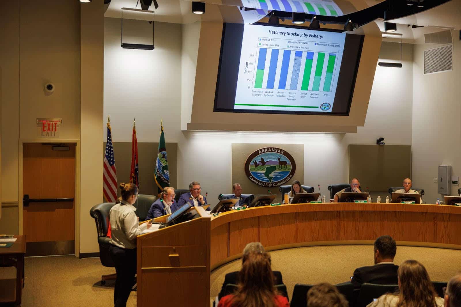 AGFC Trout Program Coordinator Christy Graham gave an in-depth assessment of the facts known about what losses at the Norfork and Spring River hatcheries could mean for stocking schedules and angling activity on Arkansas’s famous trout fisheries. AGFC photo by Mike Wintroath.