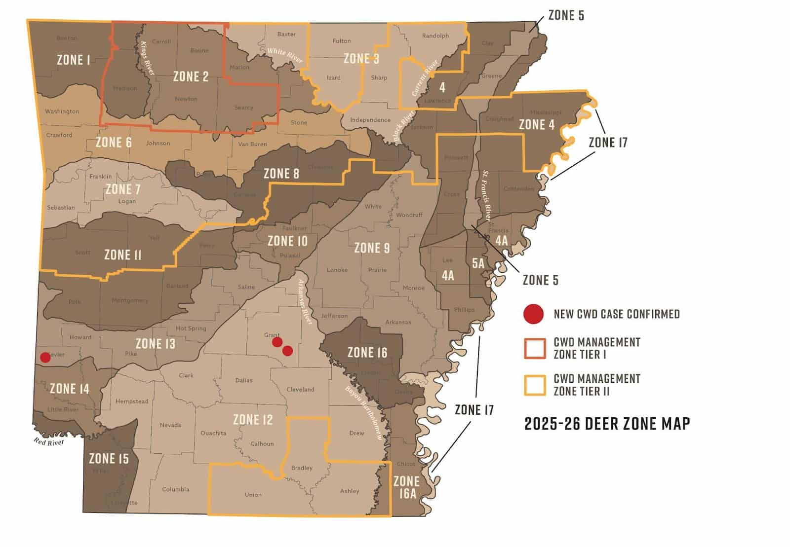 “We are stepping up surveillance efforts in these two counties and are asking for hunters’ help by submitting any harvested deer in these areas to one of our CWD testing locations,” Gray said. “In keeping with the AGFC’s CWD Management and Response Plan, we will not change any regulations regarding these findings before the end of the 2025-26 deer hunting season.”