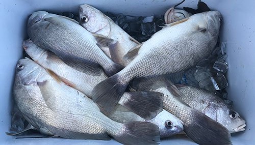 Drum are often seen as subpar for the table but this is far from the truth. When caught out of cool water, they are excellent additions to a meal. Ice the fish as soon as possible and fillet them just as you would bass or crappie. There are no intermuscular bones, and the meat is firm. With a little trimming of the dark red meat just under the skin, drum can be prepared in a variety of ways. Drum fillets are good for the traditional fish fry with a covering of seasoned cornmeal and immersion in oil at 350 degrees for about six minutes. Like their saltwater cousins, the redfish, they are also excellent with a blackened recipe. The texture and consistency also lends itself to a unique recipe, poor man’s lobster. There are many variations to this recipe, but the basics are to cube the fillets into bite-sized pieces, boil for 5 to 7 minutes in crab boil seasoning and serve with a butter-based dipping sauce. It makes for a great appetizer or main meal.