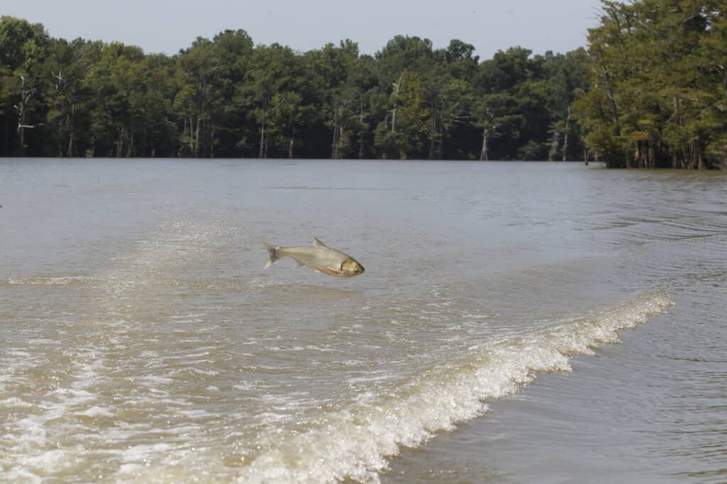 Of the four species of invasive carp threatening Arkansas waters, the silver carp has gotten the most notoriety from its tendency to jump out of the water when startled and causing injuries to boaters.