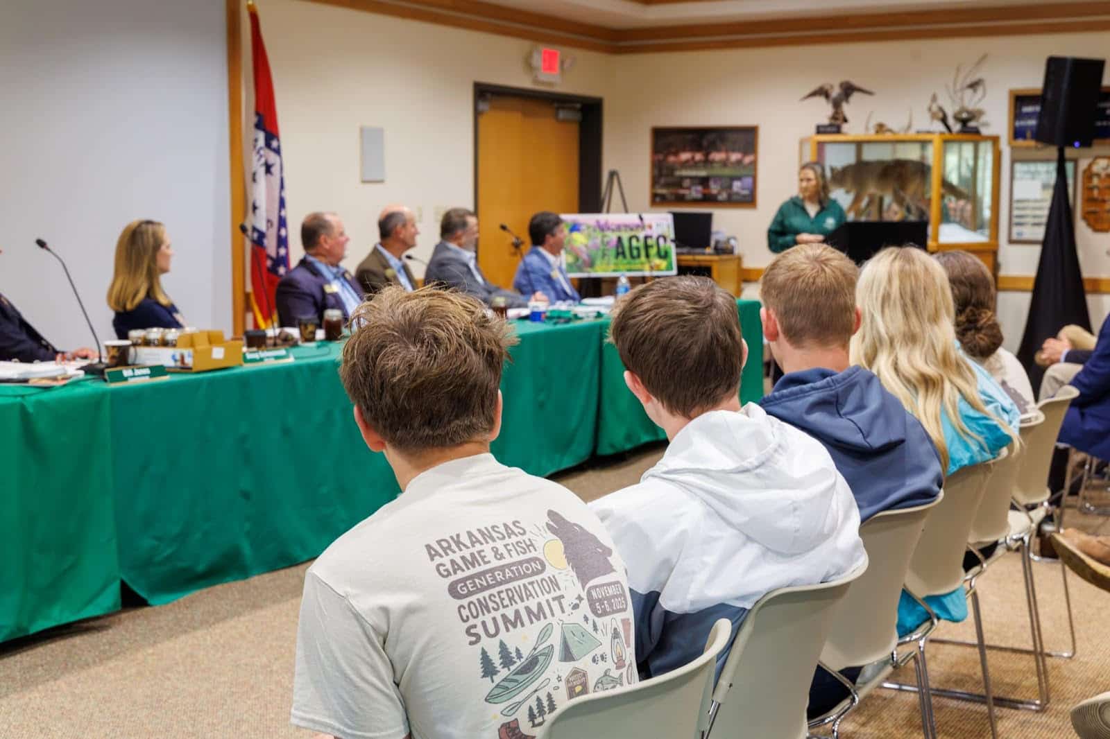 FORT SMITH — Students from three Arkansas elementary and high schools attended the Arkansas Game and Fish Commission’s monthly meeting at the Janet Huckabee Arkansas River Valley Nature Center to talk about their experiences being a part of two growing educational efforts in the AGFC: the School of Conservation Leadership Program and the Generation Conservation Summit, which took place Nov. 5-6 in Hot Springs.