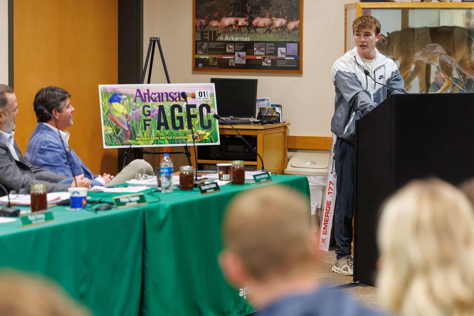 Jhett McLavey from Lincoln High School spoke about how participation in the AGFC’s outdoor education curriculum has transformed his school. AGFC photo by Mike Wintroath.